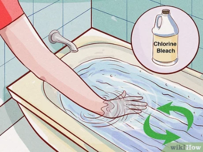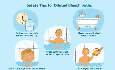 물에 소량의 표백제를 넣고 목욕을 하면 아토피 피부염에 효과. 농도는 0.005% 정도 되게 조절하고 병변부위를 5~10분 정도 담그고 눈을 비비면 안 됨. 끝나면 물로 헹구고 수건으로 가볍게 두드려 말린 다음 보습제를 바르는 방법으로 일주일에 1~2회 시행