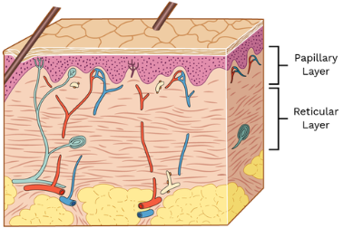 또한 진피는 표피 덮개와 기저 지방 조직을 연결하고, 콜라겐과 엘라스틱 섬유의 네트워크를 통해 피부에 안정성을 더해주고 외상으로부터 보호해 줘요