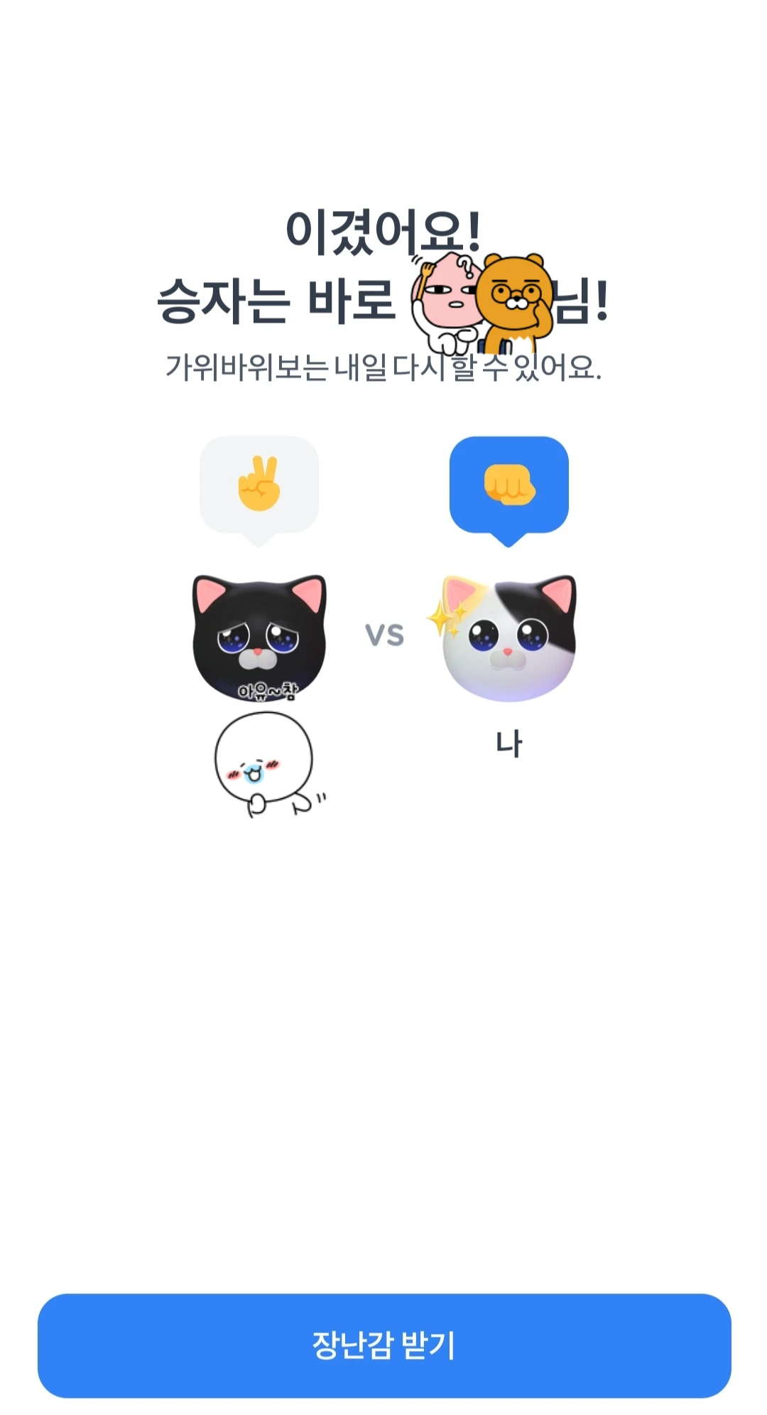저희 주임님과의 토스 고양이 가위바위보에서 이겼어요(출처: zanmang_loopy 공식 인스타그램)