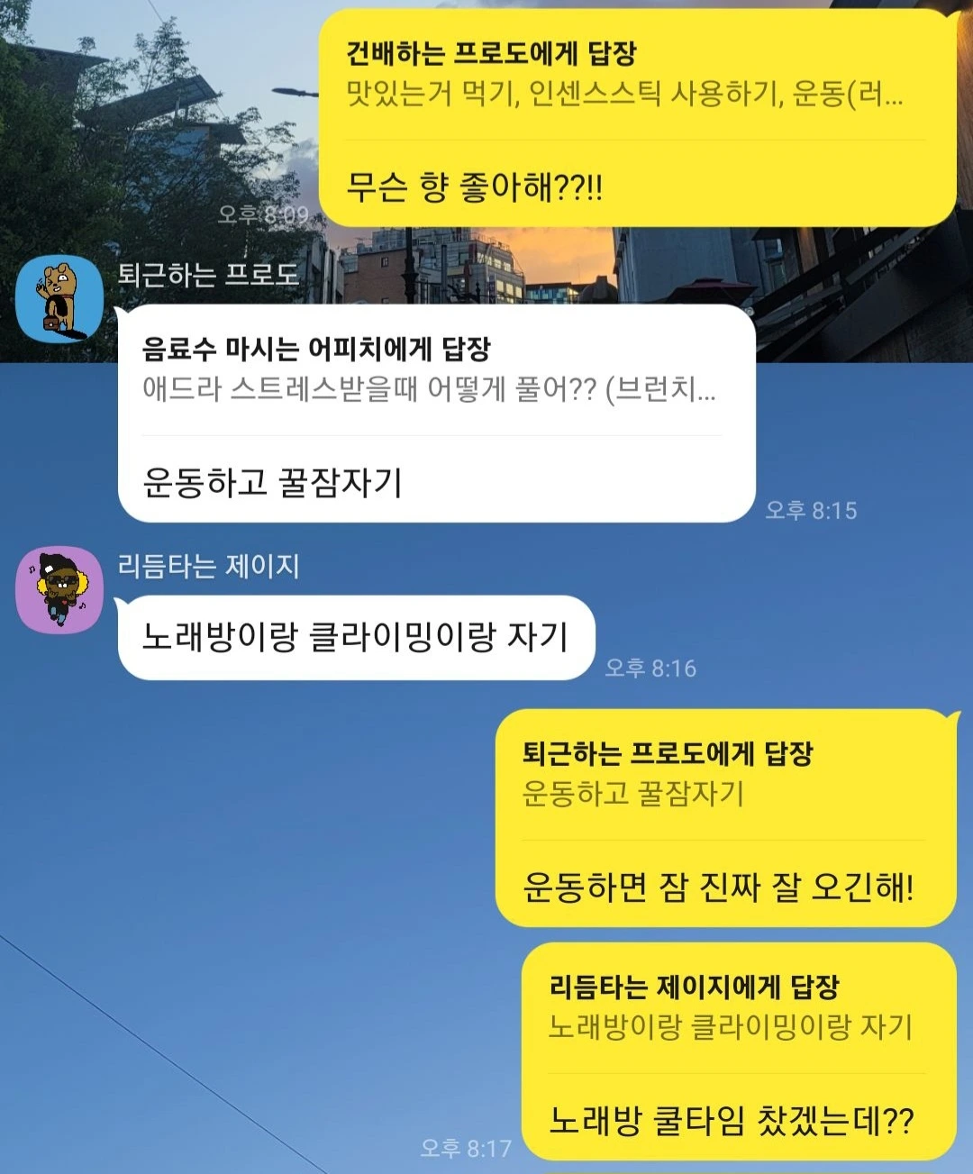 대학 동기들과 나누어본 감정 관리법인데요, 각자 취향이 잘 묻어나는 방식이라서 재미있기도 하고 좋아보이는 루틴은 따라해봅니다. (인센스는 과수원의 흙향기를 담고 있다고 합니다.)