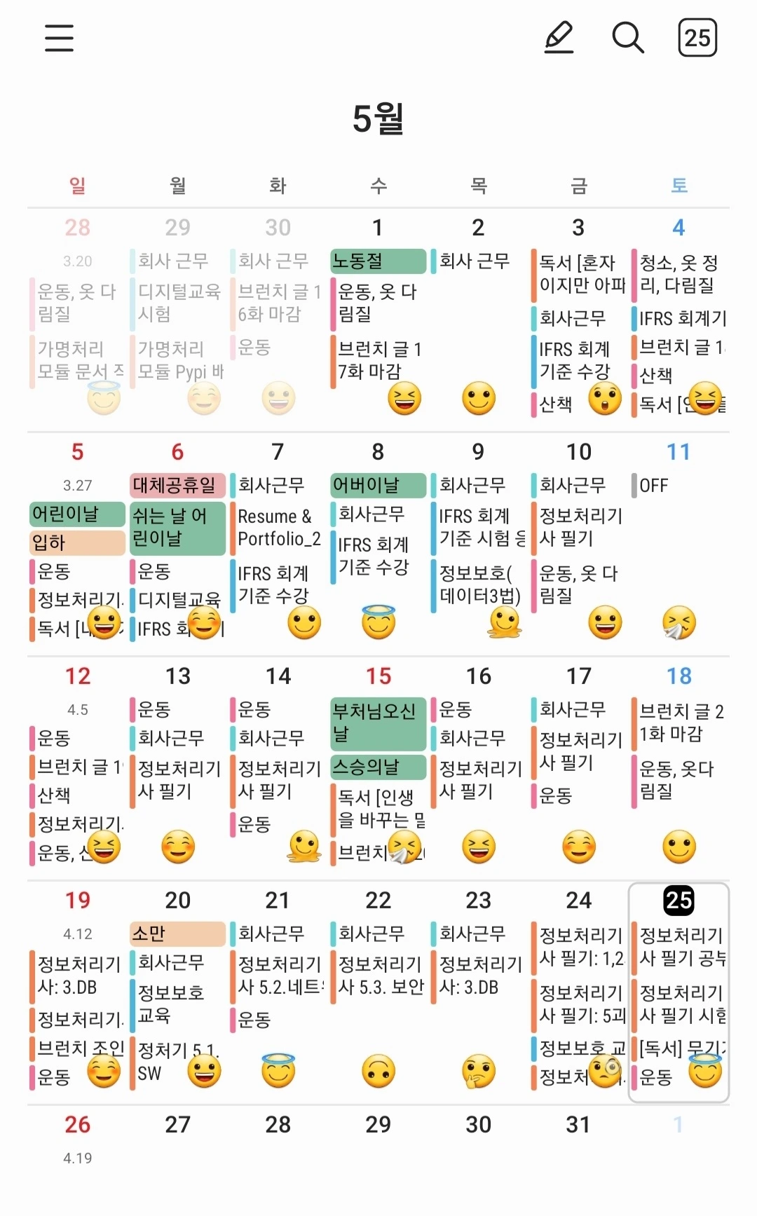 평일에 오전 4시 30분쯤 일어나고 오후 6시에 제 R&R에 맞는 업무를 확실하게 마무리 짓고 퇴근해서 자격증 공부하고 귀가하는 갓생처럼 이 글이 읽히신다면 지금부터 그 환상을 깨드립니다. 5월을 보내면서 깨달은 점은 인간의 욕심은 끝이 없고 미약하다는 점입니다.