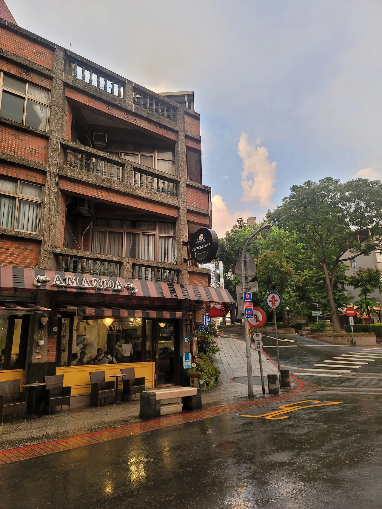 가게에서 포장한 갓 구운 포슬포슬한 카스텔라 한 상자를 들고 밀크티 가게를 찾아 나섭니다. 그렇게 단수이에서 한참을 거닐다가 낮에는 커피집, 밤에는 바로 바뀌는 어느 가게(a.k.a AMANDA 커피&와인&보드카&바)의 따뜻함 가득한 사장님을 만난 게 그날의 행운입니다.
