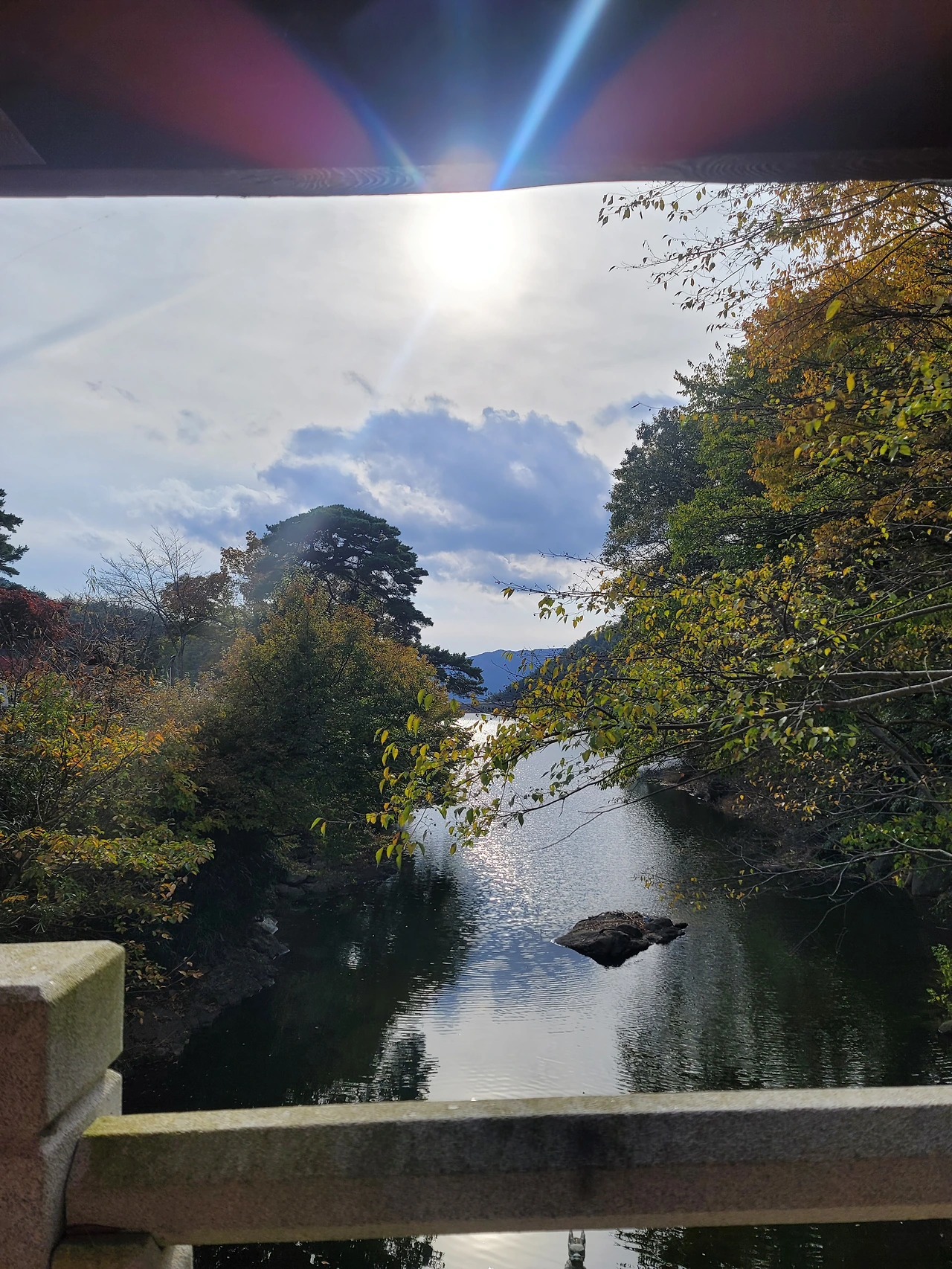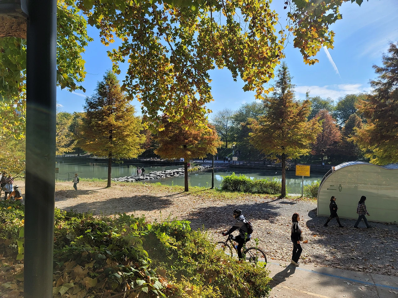 의도치 않게 가게된 회사 단체여행길(워크샵)에서 만난 풍경입니다. 푸르른 하늘과 울긋불긋한 나무가 행복처럼 줄지어 있습니다.