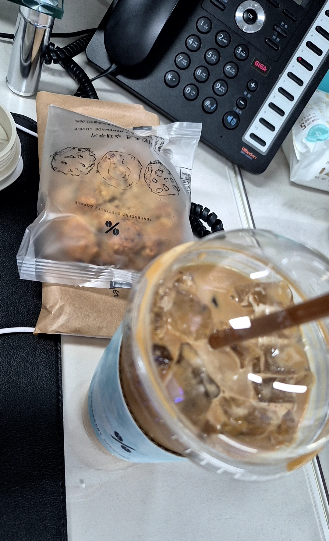 긴급하게 치고 들어오는 돌발 이슈에 한두 시간 안에 보고자료를 만들어야 하는 상황에서 점심도 스킵하고 회피하지 않고 책임지는 청유님의 모습이 차마 눈에 밟혀 옆에 앉았습니다. 도와드리면서 사이렌 오더로 아이스티와 쿠키를 시키고 픽업해왔습니다.