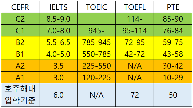 만약 본인이 공인 영어점수가 있다면, 위의 테이블을 참고해 현재의 영어 수준을 확인해 보기를 바란다.