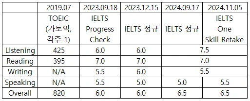 단 후술 하겠지만 Listening은 제외이다.