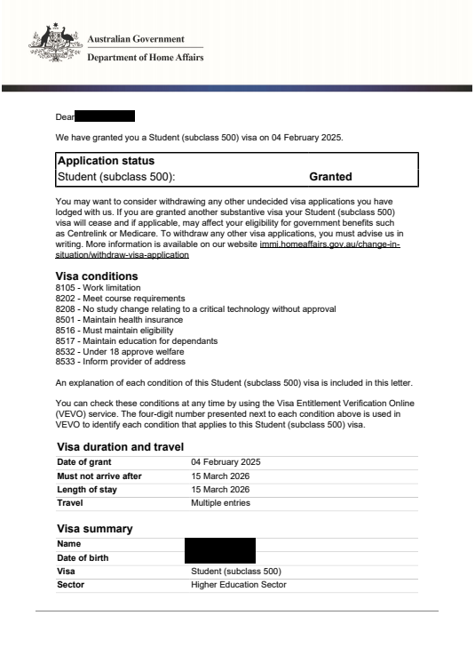 *6월 현재, 호주에 잘 도착해서 학업을 시작할 준비를 하고 있습니다. 오랫동안 기다려 주셔서 감사합니다.