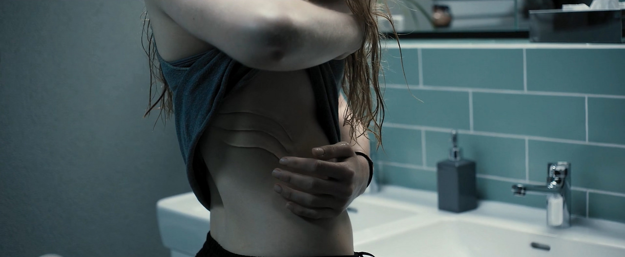 그렇다면 왜 굳이 꼭 인어일까? 먼저 ‘인어’하면 어떤 이미지가 먼저 생각이 나는지 묻고 싶다. 상상 속 인물인 인어는 푸른 바다 속 아름다운 꼬리를 가진 모습을 생각할 것이다. 하지만 미아의 모습은 그렇지 않다. 이 영화의 클라이맥스로 가면 미아의 다리는 까매진 채로 붙어버린다. 아침에 다리가 없어지고 생긴 자신의 꼬리를 보고 기겁하고 울며 소리 지른다. 아름다운 꼬리가 아닌 까맣고 괴물이라고 생각들 정도로 기괴한 꼬리의 모습이다. 나는 이 모습을 보고 미아의 사춘기는 그렇게 아름답지 않다고 느꼈다. 미아의 속은 이미 우울로 인해 난패되었고 온갖 일탈을 일삼으며 자신을 사랑하지 않았던 모습들을 미아의 꼬리를 통해 느낄 수 있었다. 다리가 사라진 미아는 기어서 화장실에 간다. 그리고 욕조에 물을 틀어둔 채 그대로 잠이 든다. 물바다가 된 집안이지만 거실을 헤엄치는 미아의 모습은 편안해 보였다.