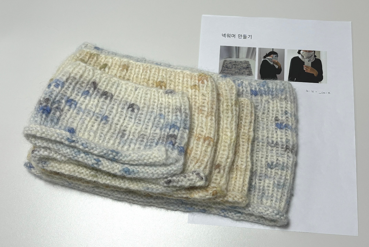 간단한 도안임에도 막상 만드려고 보니 시간이 꽤 걸렸다. 도안을 만들면서 계속 넥워머를 뜨다 보니 다시는 넥워머를 만들고 싶지 않을 만큼 만들어 본 거 같다. 그렇게 도안을 하나가 완성되었다. 도안 판매가 대박이 나서 도안 작가가 되었다고 당당하게 말하고 싶지만 주변인들이 사주신 거 외에는 판매는 부진했다. 그래도 이렇게 시작하고 나니 또 어떤 도안을 만들어 볼까 하는 즐거운 기대감이 생겼다. 그 뒤로 신나서 수업용 도안도 몇 가지 만들어 봤다.