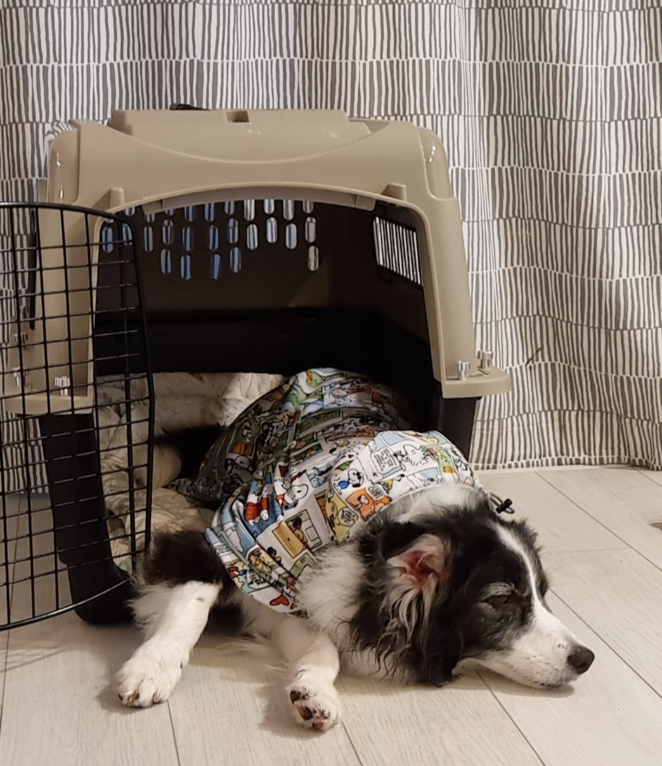 성산이 비옷과 바람막이뿐 아니라, 얇은 일상복도 몇 벌 있다. 옷을 좋아하지 않는 성산이지만, 옷이 많은 데는 이유가 있다. 옷을 입히면 산책 중 시비 걸리는 일이 확연히 줄었기 때문이다.
