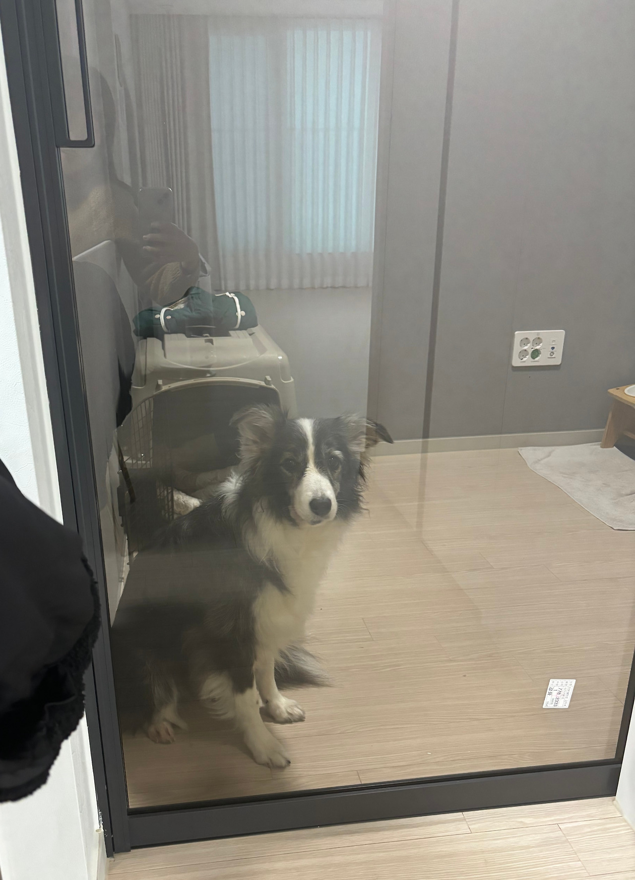 우리 집에는 팬트리 옆에 유리문으로 된 작은 공간이 있다. 보통 창고로 쓰일 만한 곳이지만, 밖이 보여 답답하지 않고 성산이가 지내기에도 딱 좋은 크기라 우리는 성산이 방으로 정했다. 밥상과 저녁에 자는 켄넬도 이곳에 있어 성산이는 이미 자기 공간으로 알고 있다.