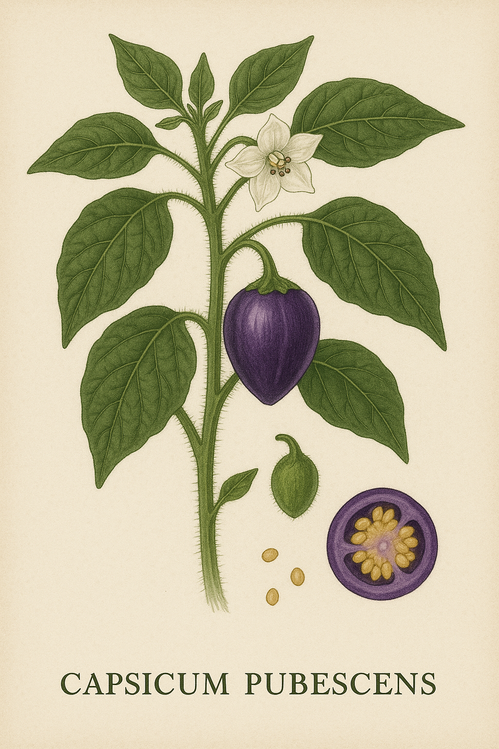 Capsicum pubescens는 고산지대에서 자라는 특수한 종으로, 잎에 털이 있고 열매색이 검은 것이 특징이다. 원산지는 볼리비아 고원이다.