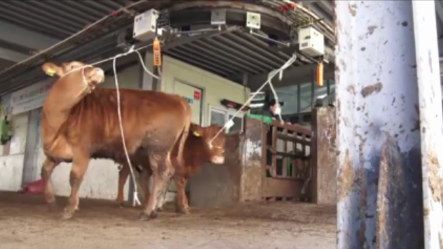 경매에 참여한 농민들은 하나씩 들어오는 송아지를 보고는 스마트폰에 가격을 입력한다. 송아지들은 계단식 좌석에 앉은 농민들을 올려다보며 무대 중앙에 선다. 사려는 사람이 많지 않으면 낙찰에 시간이 더 걸리고, 최저가가 연속으로 떨어지는 동안 송아지는 빙글빙글 돌며 날뛴다. 긴장감이 고조되는 거다. 낙찰되면 또 트럭에 시린다. 죽이지 않는다는 것에 한숨 놓았을까?