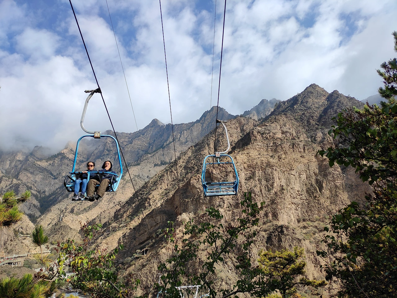 리프트는 산 정상까지 왕복 50元(약 9,000원) 이라는데 나는 경치를 즐길 겸(사실은 떨어질까 봐 무서워서) 걸어 올라갔다. 산 정상에서는 놀랍게도 줄타기 공연이 진행 중이었다. 두 협곡 사이에 줄을 걸어놓고 그 위에서 자전거도 타고 오토바이도 탔다. 몸에 안전장치를 하고 있는 것 같지도 않다. 몇 안 되는 관람객들의 반응도 시들하다. 핸드폰 속에 더 짜릿한 게 많기 때문일 것이다. 산 입장료가 60元(약 11,000원)인데 대체 그중 얼마를 받길래 매일 저렇게 목숨을 건 협곡 공중 곡예를 펼치는 것일까. 슬픈 노동의 현장이었다.