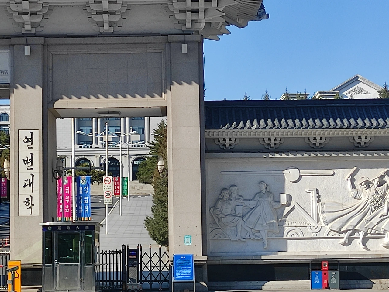 그럼, 연길에서 어떤 사람들이 이렇게 비싼 ‘회장님댁’에 올까? 한국 드라마에서 늘 남주에게 ‘못-난-놈!’ 하고 혼자 성을 내다 쓰러지곤 하던, 바로 그 '회장님' 집에 한 번쯤 가보고 싶은 사람들이 와보겠지. 평생, 회장님댁에 살아보거나 초대되기는커녕 그 앞에 얼쩡거릴 기회조차 없는 나 같은 사람들이 와보겠지. 연길에는 회장님댁만 있는 게 아니다. 연길의 핫플레이스 연변대학교 앞에는 ‘홍대클럽포차’, ‘청담동 가로수길 카페(清潭洞佳路树街)’ 심지어 ‘버닝썬 룸포차(伯宁森)’도 있다. 십여 년 전, 진돗개로 유명한 섬 진도에 근무한 적이 있었는데, 그때 진도읍에 뜬금없이 있던 ‘뉴욕치과’와 비슷한 맥락이라고나 할까. 연길에 스며든 코리안드림이 재미있기도 하고 씁쓸하기도 하다. 그런데 연변대학교 정문 외벽 부조벽화에는 왜 서울대 교문 ‘샤’ 마크를 새겨놓았을까?