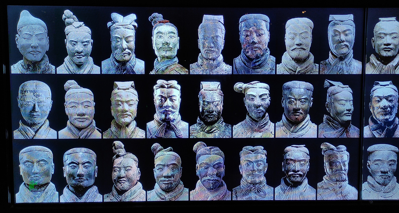 실제 사람 크기와 비슷한 8천여 개의, 얼굴, 복장, 머리모양, 수염모양, 귀모양까지 모두 다른 거대 테라코타 군단. 타의로 무자비한 권력자의 무덤을 지키고 있어서일까. 기묘하고 경탄스럽지만 애처롭고 슬프다.