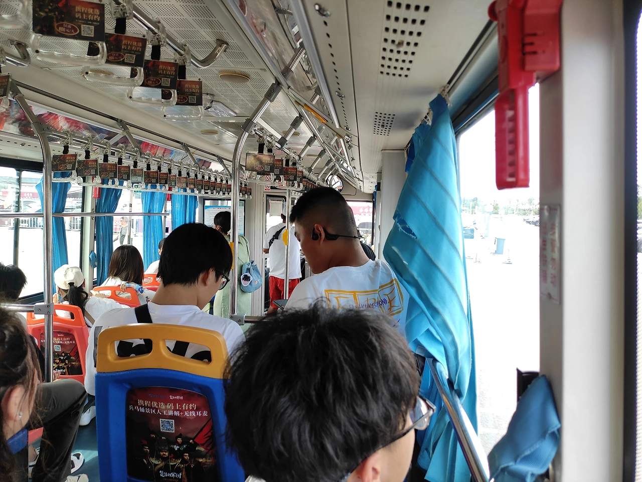 9호선으로 갈아탄 다음 화청지(华清池) 역에서 내린다. 역 밖으로 나오니 병마용 직통 613번 버스가 기다리고 있다. 5元을 내고 20분 정도만 타면 병마용 입구까지 간다. 두 번을 갈아타긴 했어도 여행사 대형버스보다는 덜 번거로운 것 같다. 그런데 입구에서 검표소까지 엄청 걸어야 하고, 또 검표소에서 병마용 1 호갱까지 엄청 걸어야 한다는 게 함정. 여행사 버스를 타더라도 대형버스 주차장에서부터 검표소까지 넓고 긴 길을 걸어야 하는 건 마찬가지다. (병마용 박물관내에는 유료전기차가 운영 중이다.)