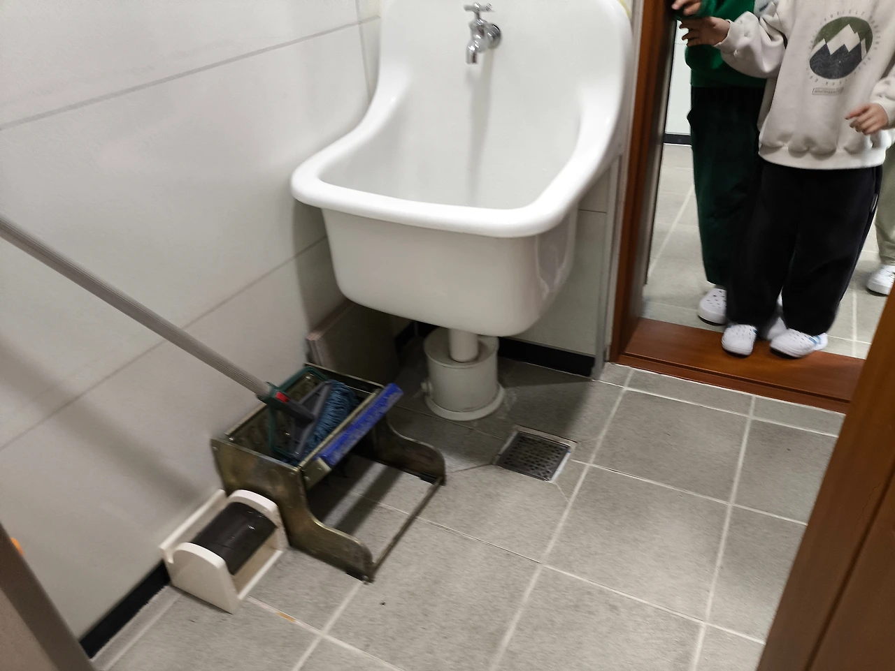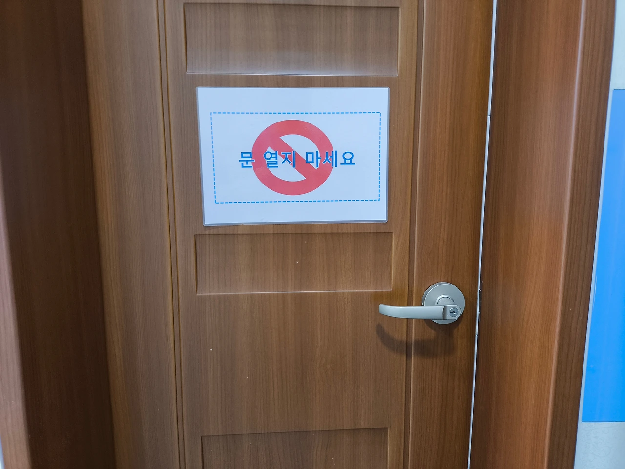 별거 없다. 청소여사님의 전용 청소도구가 있을 뿐이다. 그리고 여자화장실로 바로 연결된다. 그래서 여자화장실에도 '문 열지 마세요'가 붙은 똑같은 문이 있다.