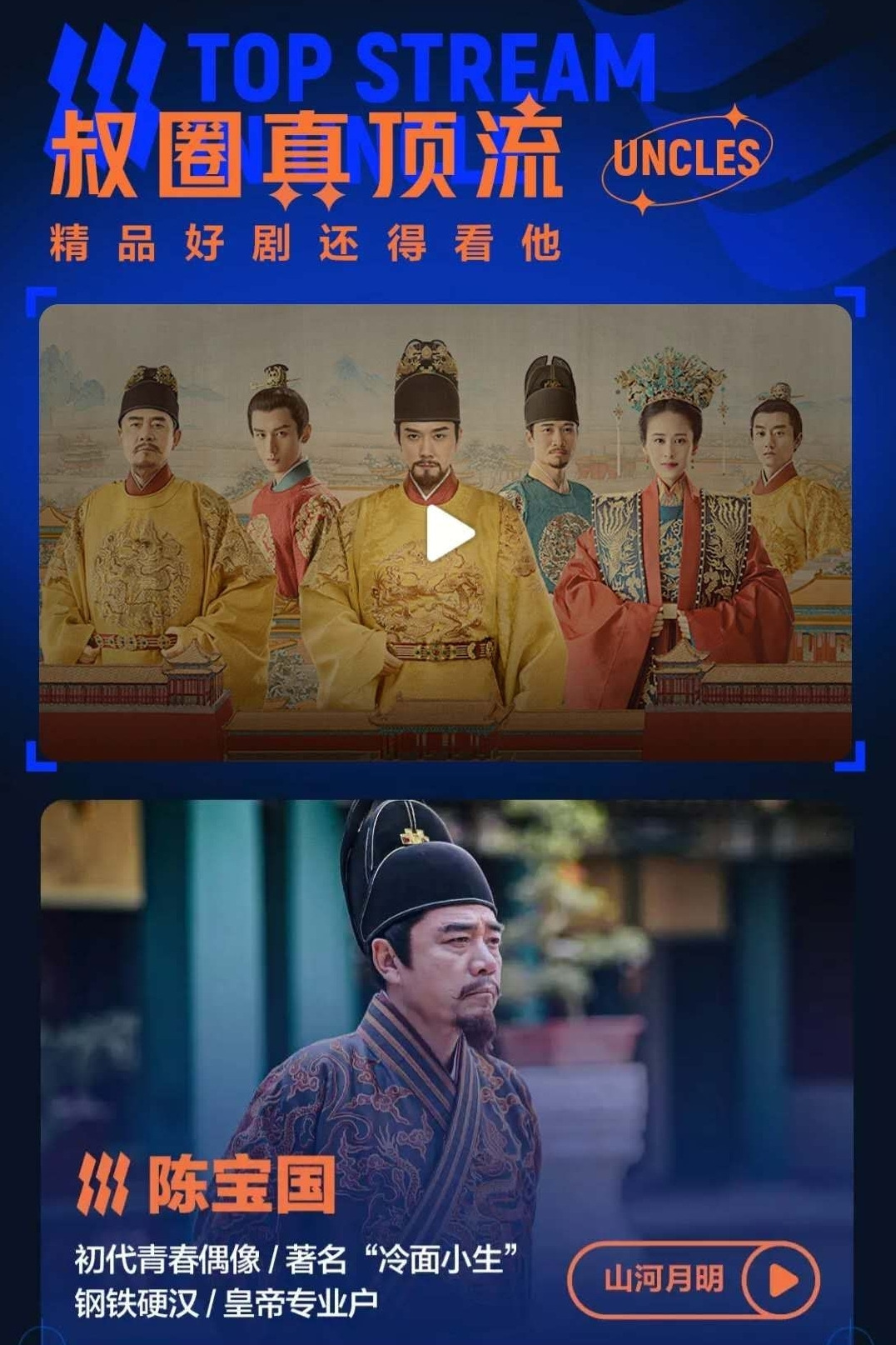 진보국(陈宝国)이라는 노련한 배우가 냉철한 독재군주지만, 조강지처 호랑이 아내 앞에서는 꼼짝 못 하는 소탈한 남편, 주원장 역할을 멋지게 해냈다. 중국어를 잘 모르는 외국인인 나까지도 울려버린 그의 인간미와 카리스마 넘치는 쩐(真) 연기, 나는 어느새 이 멋진 중국 아재의 팬이 돼버렸다. 그는, 어린 미남 배우(小鲜肉)에 회의를 느낀 중국 시청자들 사이에서 요즘 불고 있는 ‘TOP STREAM UNCLES’, 아재열풍의 주역이기도 하다.