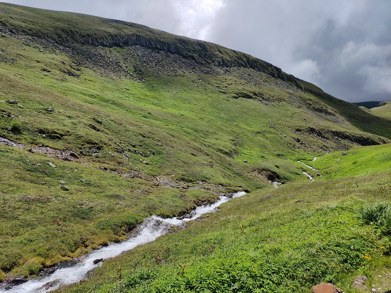풍경 구내 버스를 2번 갈아타고 1442개의 계단을 직접 올라가야 천지를 볼 수 있는 서파는 전날 내린 비로 활기가 넘쳤다. 곳곳에 실개울이 생겼고 협곡의 물이 세차게 흘러내렸다. 샛푸른 하늘과 연둣빛 들판, 보라색, 흰색, 노란색 소박한 여름 꽃들이 생기 있게 어우러졌다. 지난 겨울 올랐을 때는 볼 수 없던 아기자기하고 다정한 풍경이었다.