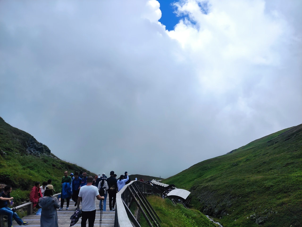 계단을 오르는데, 관리 아저씨들이 큰 소리로 외쳤다. "얼른 속도를 내 올라가세요. 산 아래에서 구름이 올라오고 있어요. 오후가 되면 천지를 못 봐요."