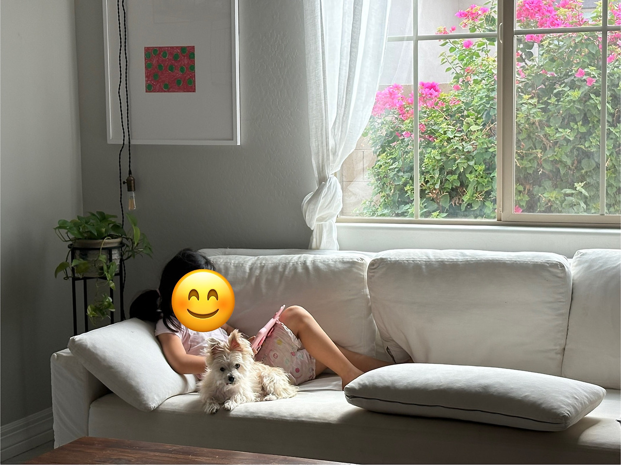 우리 딸은 풍금이 떠나고 없는 이 방을 여전히 푸근방이라 부른다. 그리고 여긴 현재 우리 딸과 강아지의 독보적인 최애 공간이다.