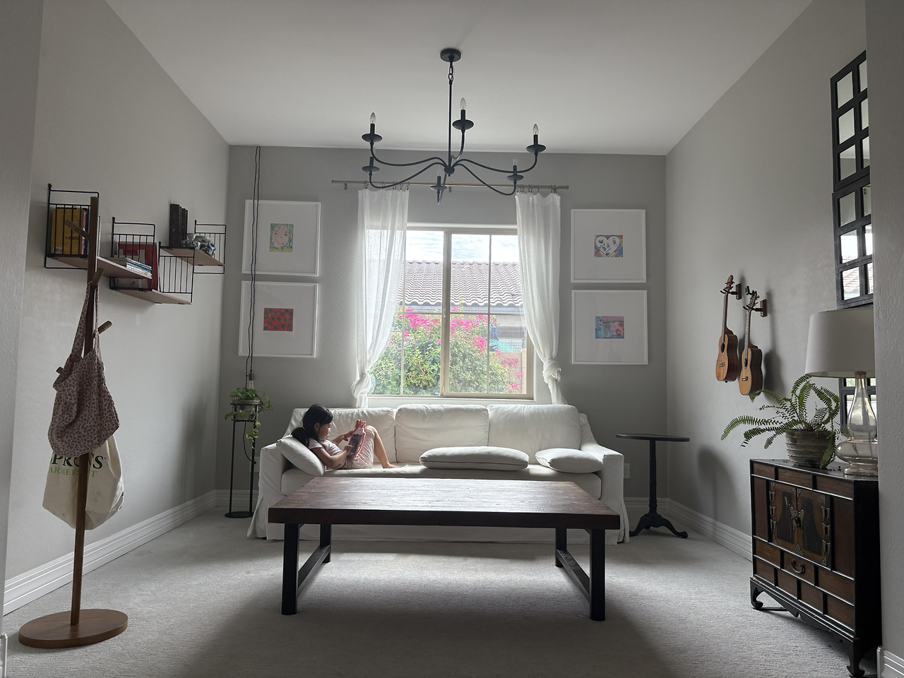 너무 휑해진 것 같아 이번엔 패밀리룸에 있던 소파와 테이블을 풍금방으로 옮겨 보았다. 꽤 덩치가 큰 소파와 테이블인지라 옮기기 전엔 이 작은 풍금방에 얘네들이 어울리려나 살짝 걱정했었다. 근데 막상 옮겨 놓고 보니 이 녀석들 사실 덩치만 컸지 여전히 아가들이다. 엄마 자궁 같은 풍금방에 쏙 안겨 있는 모습이 귀엽기만 하다.