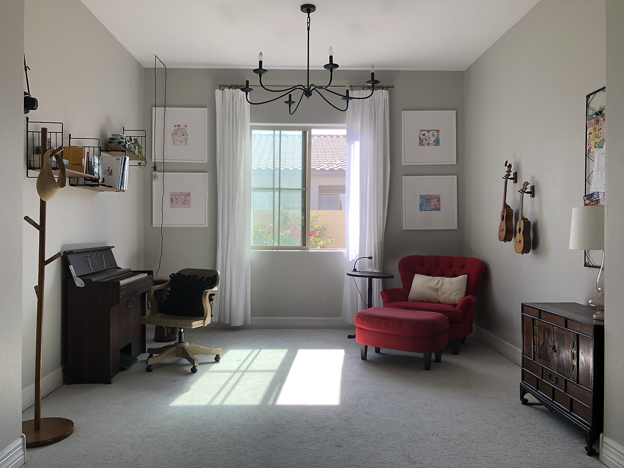 이렇게 풍금방에 있던 풍금은 음악이 필요한 남편에게로, 젬베는 자신을 사랑스럽게 두드려 줄 젬베 동아리 회장님에게로 갔다. 마지막으로 풍금방엔 새빨간 암체어만 남았다. 이 암체어까지 패밀리룸(현재의 요가룸)으로 보내봤다. 풍금방이 텅 비었다.