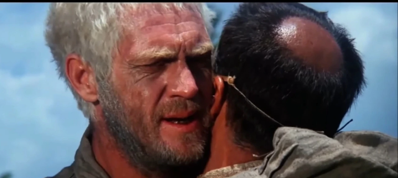 살인 누명을 쓰고 종신형을 선고받은 빠삐용이 감옥으로 가는 모습에서다.