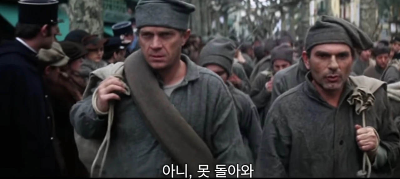 죄수들 무리에 끼어 터벅터벅 감옥으로 향하는 화면이 잡힌다.