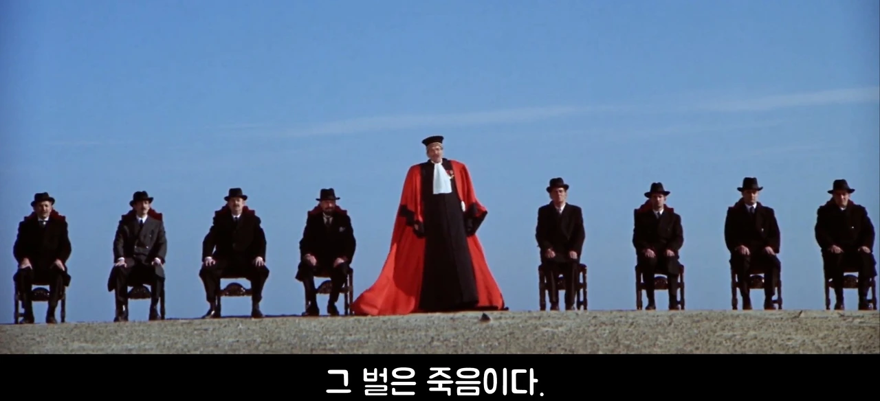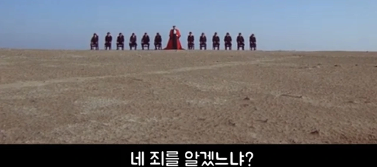 칠흑 같은 어둠 속에서 공포에 부들부들 떨며 꿈을 꾸는데, 재판관이 묻는다.