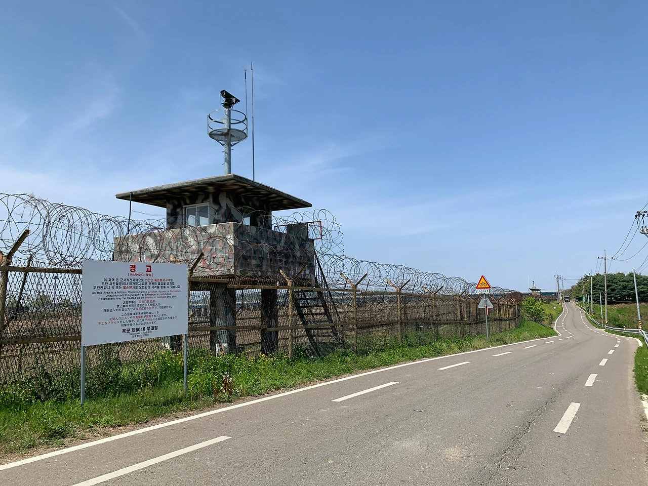 파주 평화누리 3,4코스와 공릉천은 나에게 '평화로움'으로 다가왔다. 파주 평화누리 자전거길을 따라 북으로 갈수록 '민간인 통제선' 이라는 팻말과 함께 철책이 자주 눈에 띈다. 그러나 흉물스런 철책과 초소는 조금도 위협적이지 않다. 철책 아래 핀 노란 들꽃과 초록 풀들 때문에 철책마저 아름답게 보인다. 시원하게 뚫린 자유로 위를 빠르게 달리는 자동차들 때문에 시끄러울 것 같지만, 전혀 그렇지 않다. 자유로 위를 부드럽게 덮고 있는 푸른 하늘과 자유로 양쪽을 포근하게 감싸고 있는 드넓은 들판이 소음을 막아 주어서 생각보다 시끄럽지 않다. '이야, 너무 좋다!'는 마음의 소리가 더 크게 들릴 정도다.