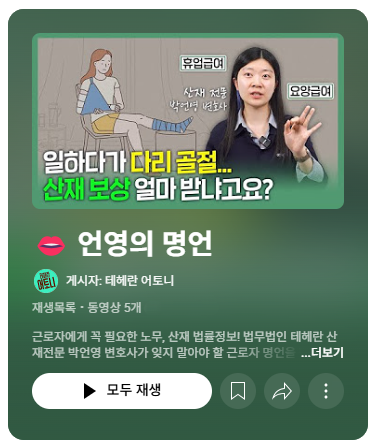 안녕하세요, 법무법인 테헤란의 산업재해 변호사 박언영입니다.