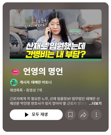 안녕하세요, 법무법인 테헤란의 산업재해 전문 변호사 박언영입니다.