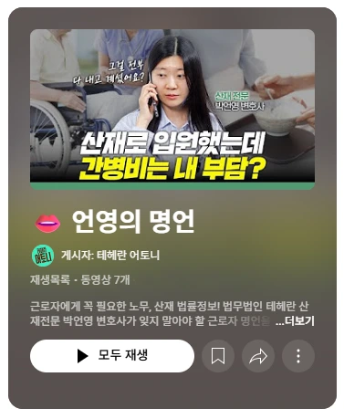 안녕하세요, 법무법인 테헤란의 산업재해 변호사 박언영입니다.