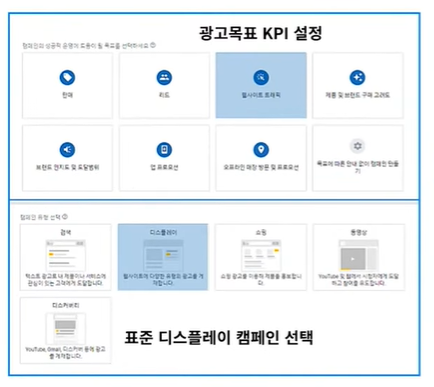 광고 캠페인 생성 단계에서는 광고 목표 KPI 설정을 하고 디스플레이 캠페인을 선택한다.
