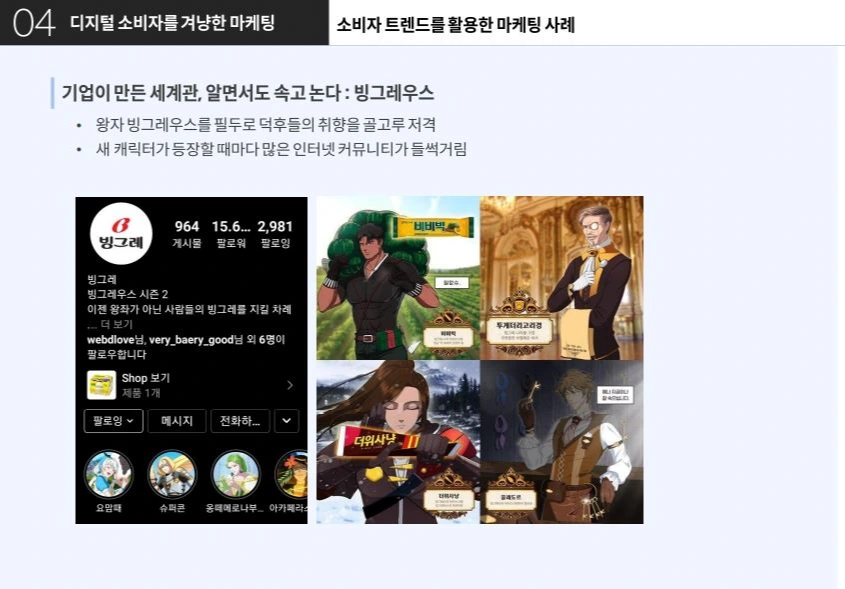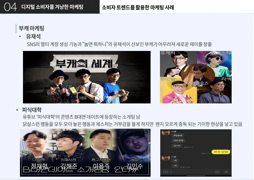 또한, 부캐라는 개념으로 소비자에게 새롭게 다가가고 있어요. MZ세대에게 유명한 피식대학은 부캐를 잘 활용하여 성공한 대표적인 케이스입니다.