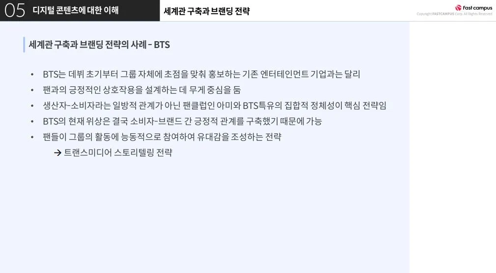 이러한 콘텐츠 마케팅의 가장 대표적인 성공 사례가 BTS가 아닐까 생각해요.