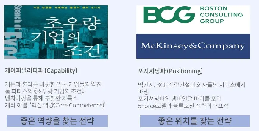 잘하는 것을 찾는 '케이퍼빌러티파'와 잘 되는 판을 찾는 '포지셔닝파'로 나뉘죠.
