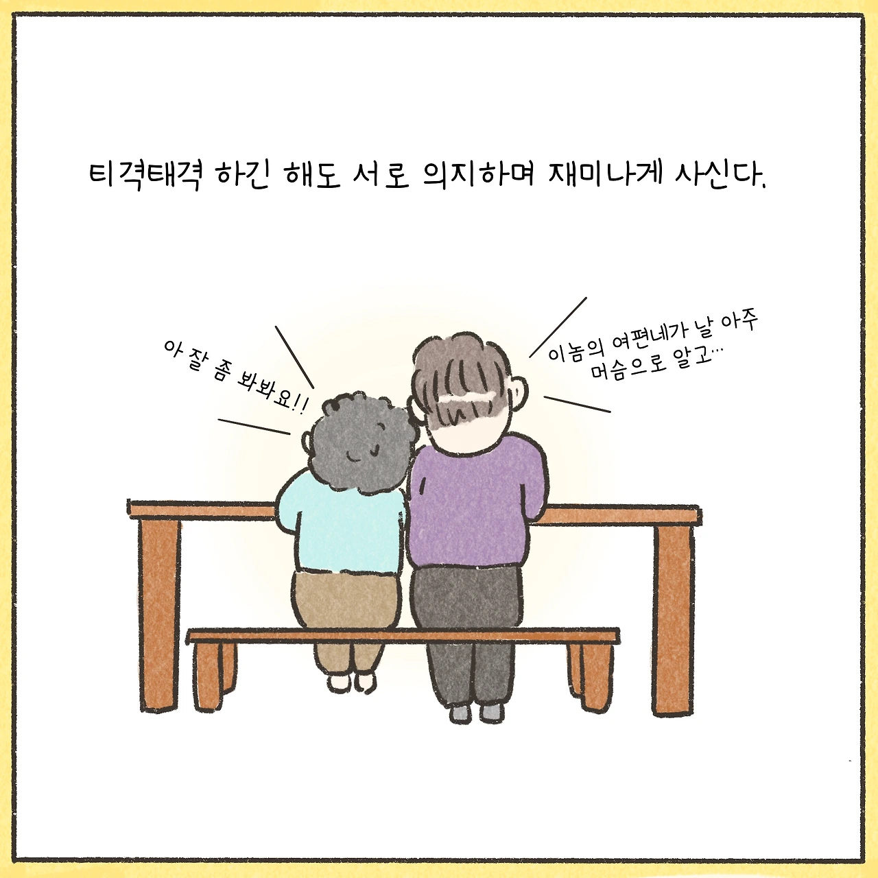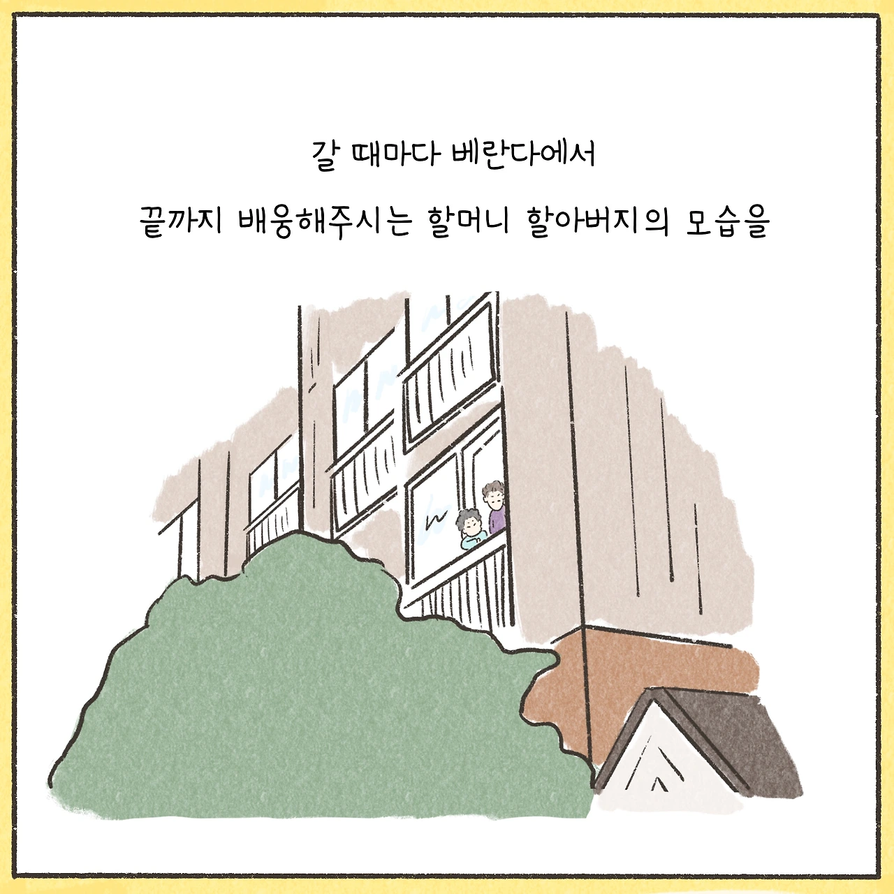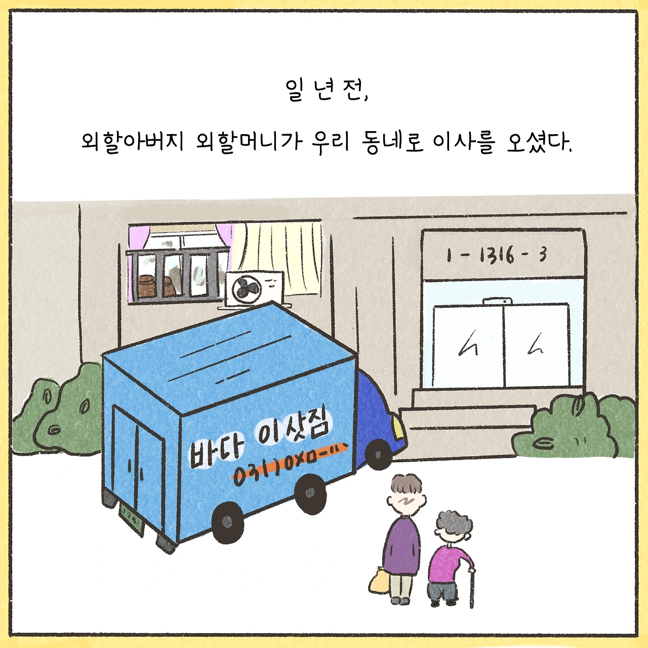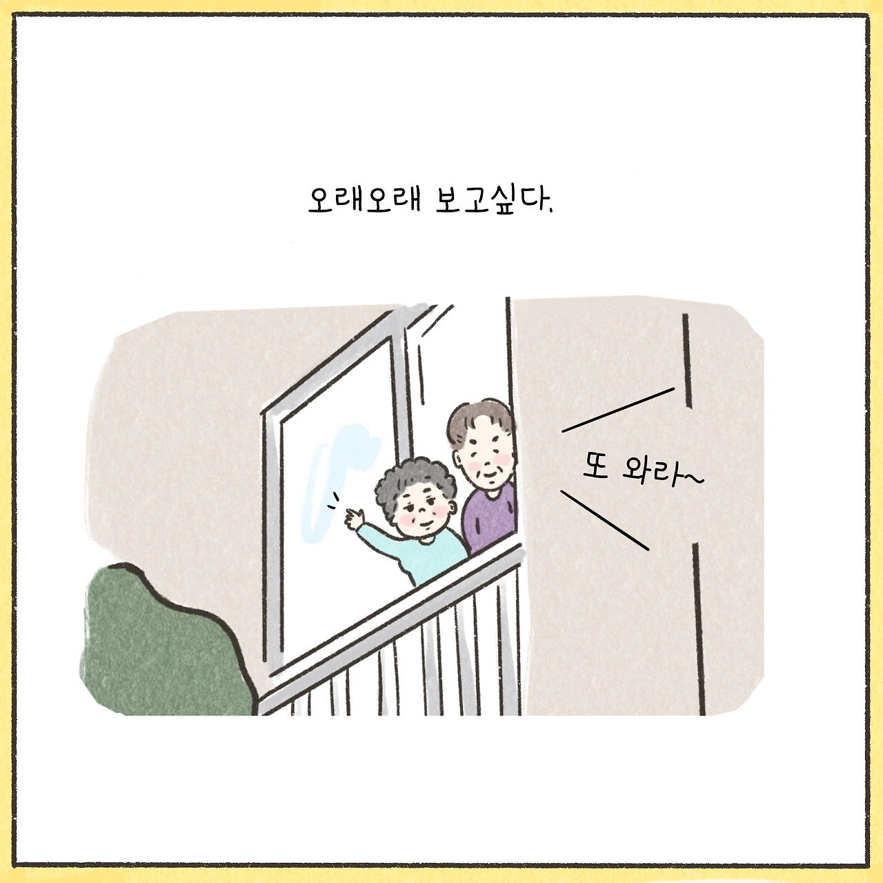 그래서 저희가 더 외롭지 않게 해드리려고 해요. 가기만 하면 너무나 반갑게 맞아주시고, 돌아가는 길엔 뒷모습이 보이지 않을 때까지 손을 흔들어 주시니까요. 두 분 다 몸이 성치 않으셔서 어디 좋은 곳 한 번 모시고 가기 어렵지만, 지금 이대로도 충분한 것 같습니다.