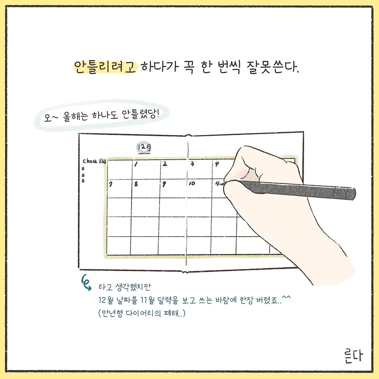 시작된 지 하루밖에 지나지 않은 올해도 흠이 없는 날들을 보내기엔 글렀다는 것을 알고 있다. 작년보다 나은 해를 살아갈 뾰족한 방법이 있는 것도 아니다. 당장에 내 삶에 주어진 새로운 것들이 다이어리와 달력밖에 없어도 이때가 설레고 기대되는 이유는, 완벽하지 않아도 감사한 한 해를 이미 보내봤기 때문이다. 그래서 올해도 어떤 것으로 채워질지 아직 알 수 없지만 감사하고 행복한 시간일 것임을 기대한다.