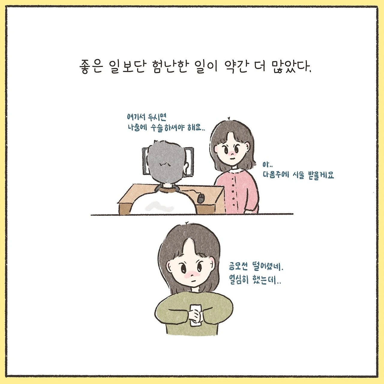 나보단 같이 간 엄마가 더 걱정이셨다. 초음파를 20분도 넘게 보고 나왔을 땐 정말 심각한 얼굴이었다. 왜 이렇게 오래 걸렸냐고.