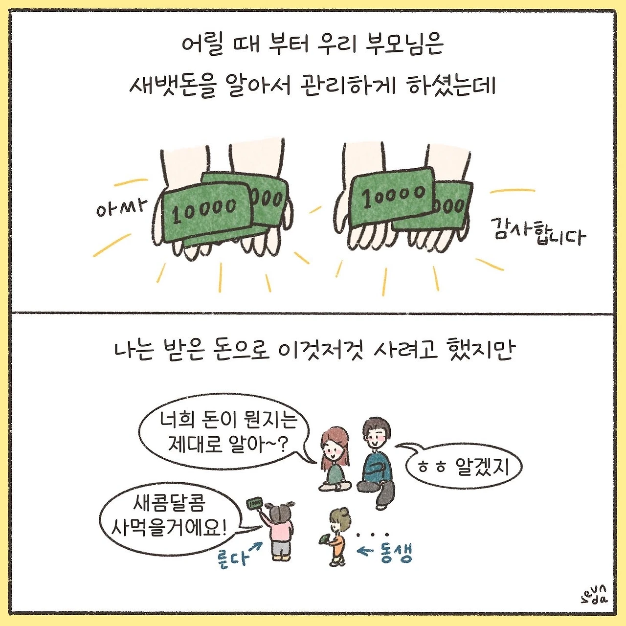 엄마의 경제 교육 덕분일까? 어쨌든 지금은 규모 있게 쓰고 기분 좋게 베풀 줄도 아는 어른이 되었으니 꽤 성공적인 육아였던 것 같다. (반면 나는 좀 덜 쓰는 교육을 받았어야 했다.)