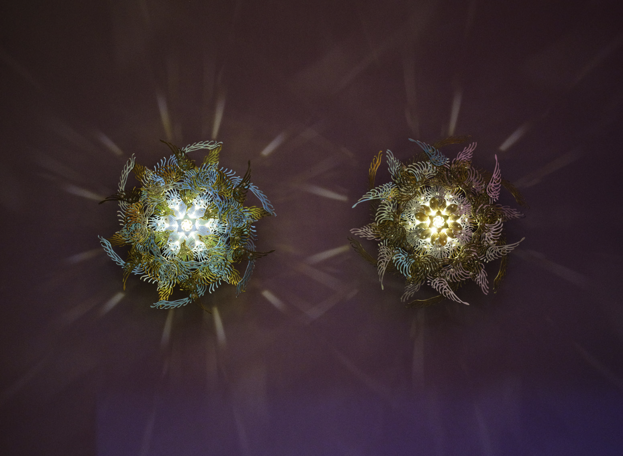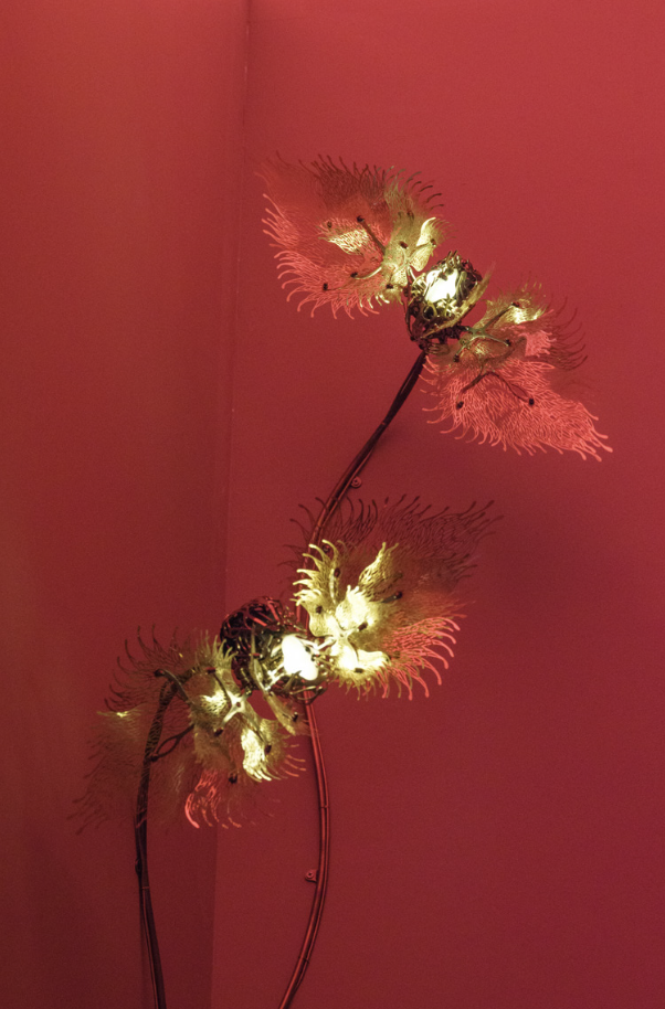 <알라 아우레우스 나티비타스>는 꽃잎 같은 황금 날개들을 펼치면 한 마리 곤충이나 작은 동물처럼 보이는데, 작가에 의하면 이 ‘황금빛 날개’들은 맑은 새벽녘에 잠든 인간들의 곁으로 날아가 그들의 꿈을 엿듣는 존재들이다.