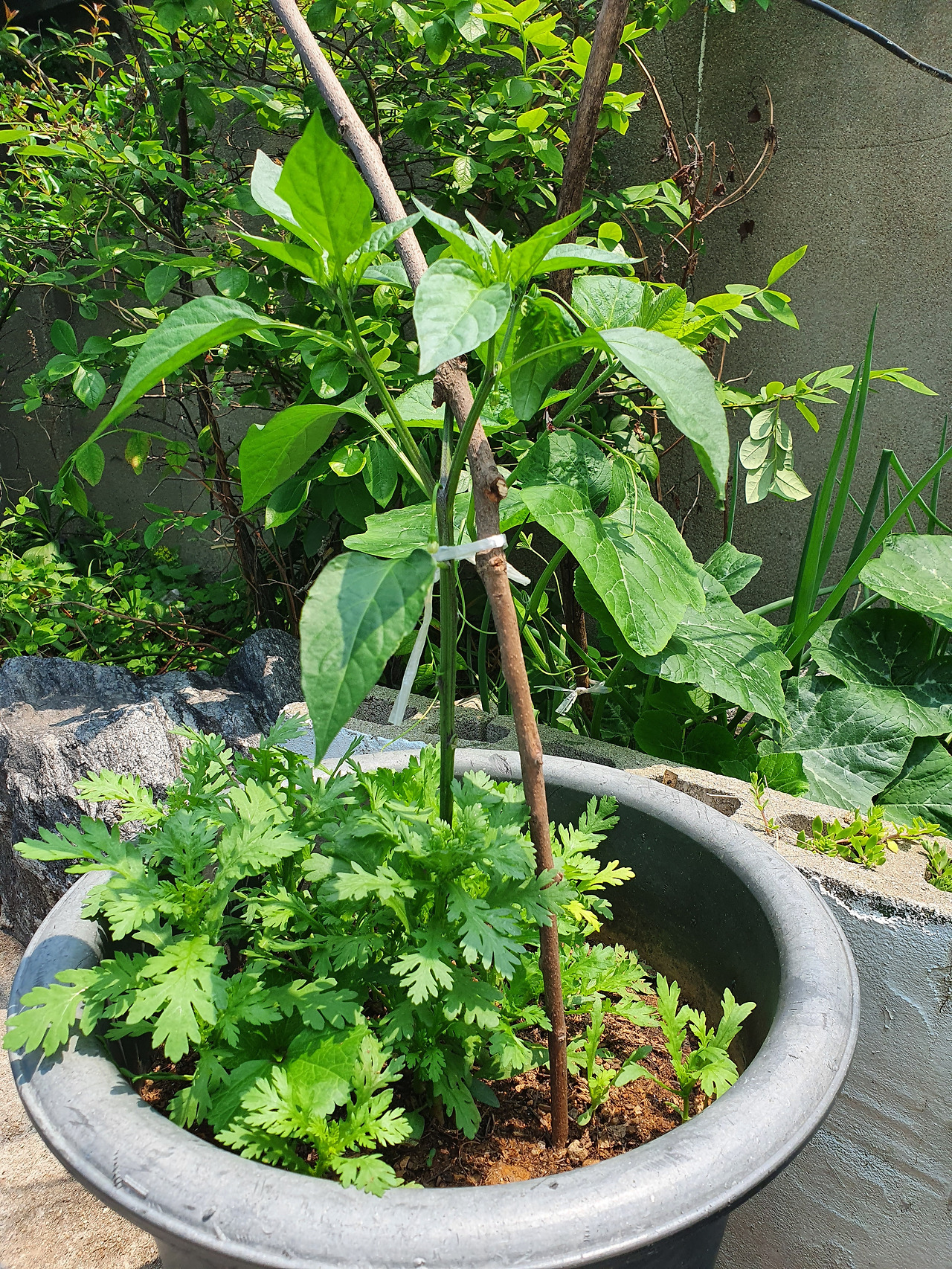 나는 그렇게 여러 번을 더 수확한 고추들을 모아 큰 대접에 담아두었다. 왜인지는 모르겠으나 고추들은 단단했고, 짱딸막했다. 어금니로 고추를 씹으면 그 강도가 피망보다 더 했다. 단단함 만큼 신 맛을 냈다. 분명 따온 이후 오랜 시간을 바깥에 두었는데, 오래 살아있었다. 마트 고추였으면 이미 10번은 넘게 짓물렀을 시간을 대접 속에서 그 고추들이 버텨냈다. 나는 수확한 고추들을 다음해가 다가올 때까지 두고두고 먹었다.