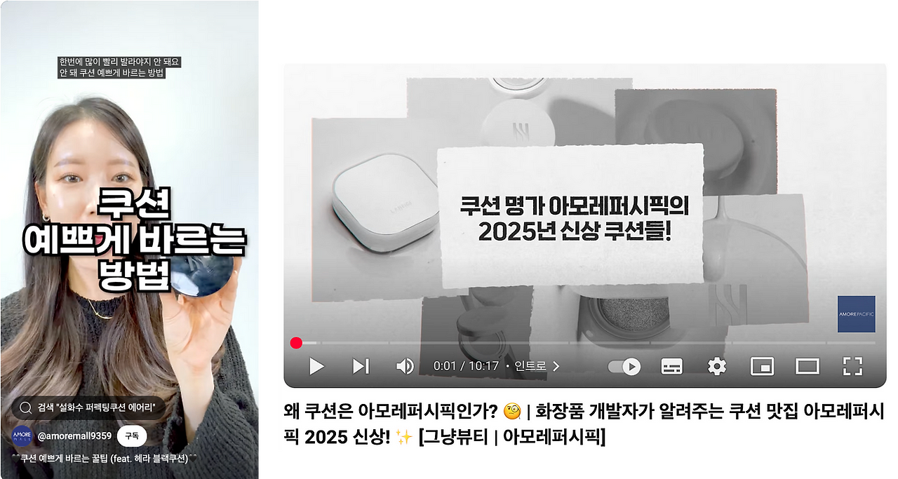 효과: 짧은 팁으로 유입된 관심을, 기술력 기반 신뢰감으로 전환. ‘단순 메이크업’ → ‘스킨케어 기반 쿠션’으로 인식 변화 유도