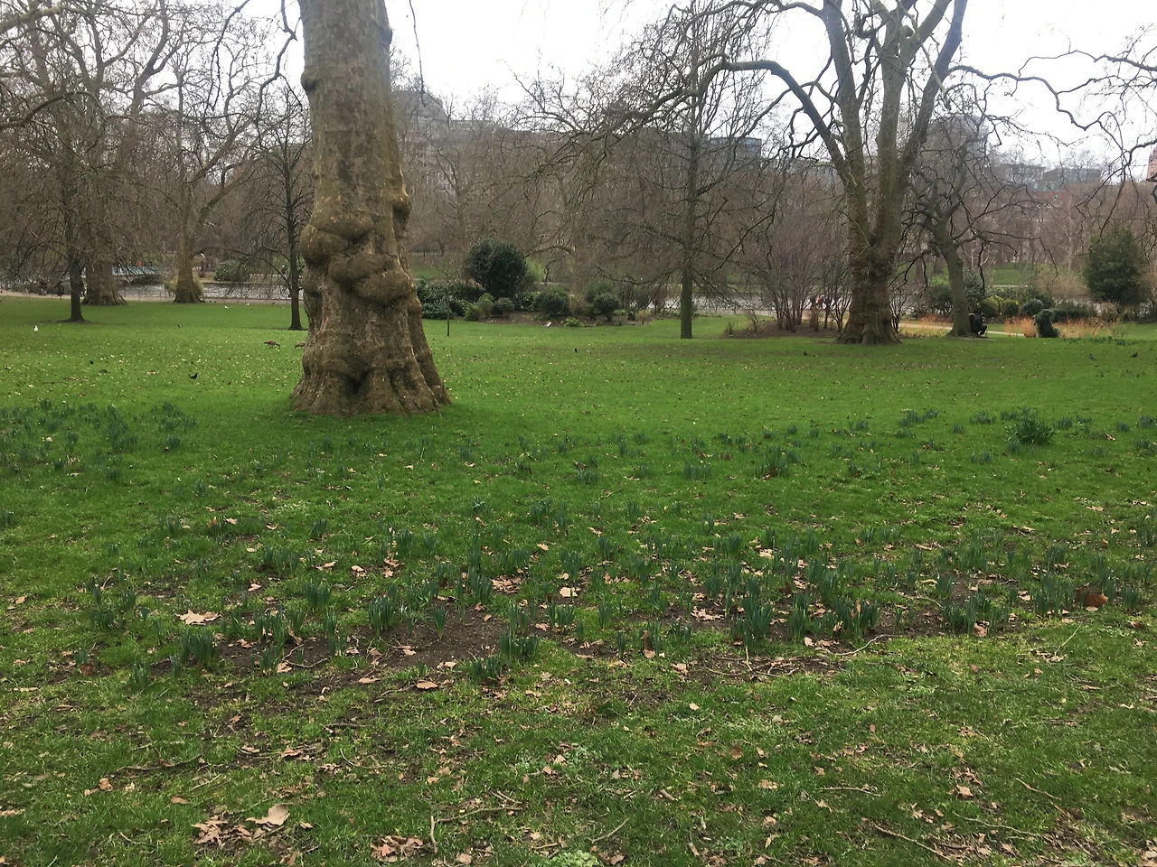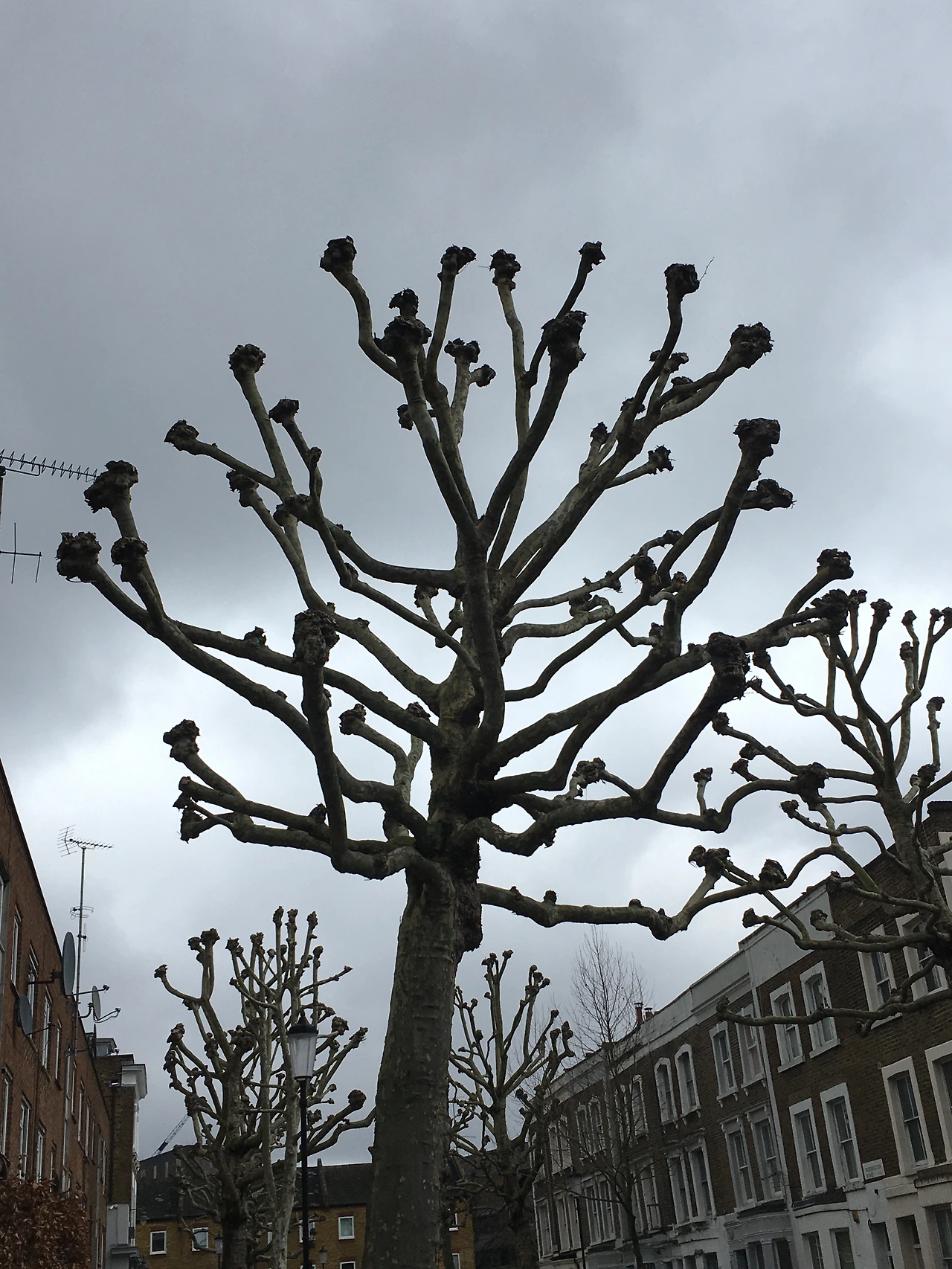 런던의 가로수는 가지치기가 되어있어 잔가지를 볼 수 없었다. 뭉툭한 그 끝 덕분에 얇은 팔이 주먹을 움켜쥔 것 같기도 했고 휴지로 만든 꽃봉오리 같기도 했다.