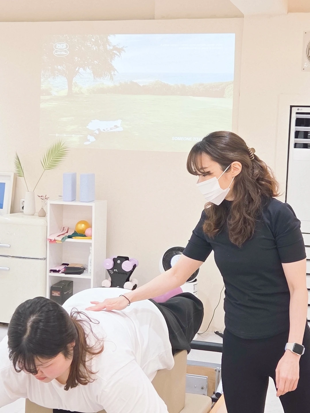 그녀는 필라테스 강사가 되어 회원들의 몸과 마음을 돌보고 있죠.