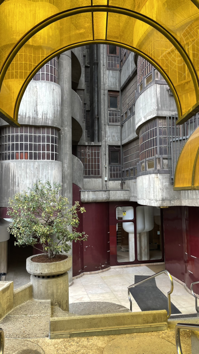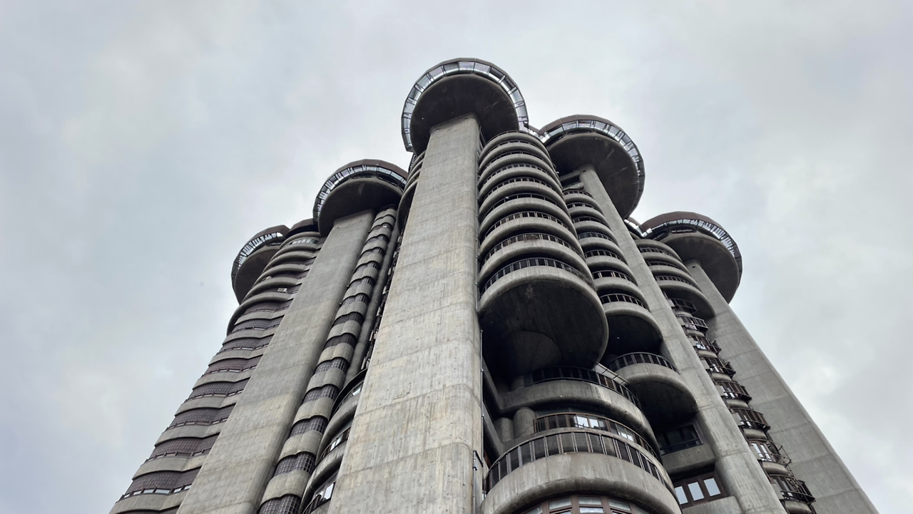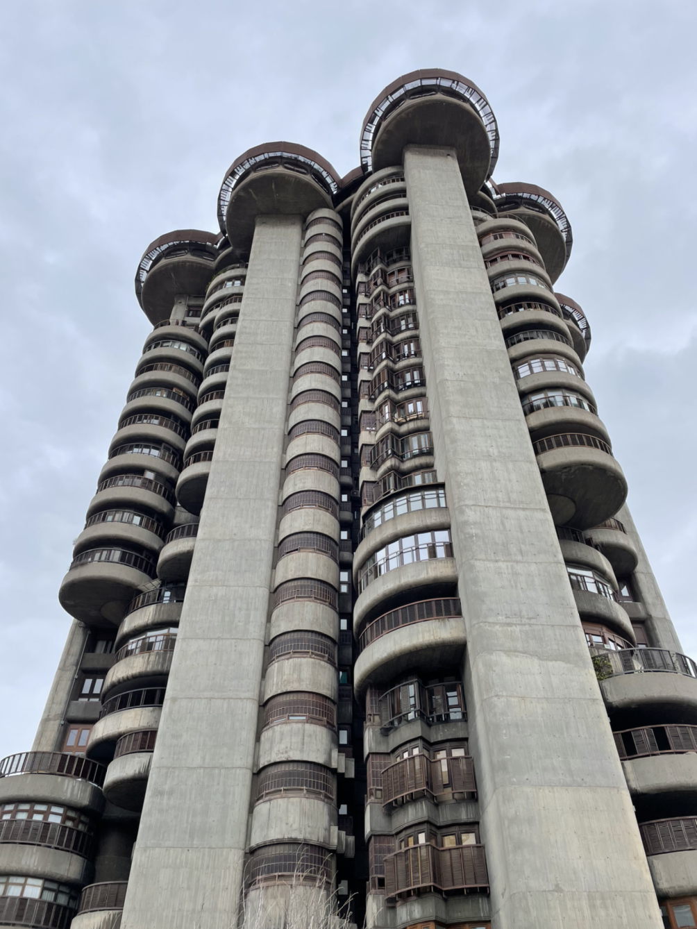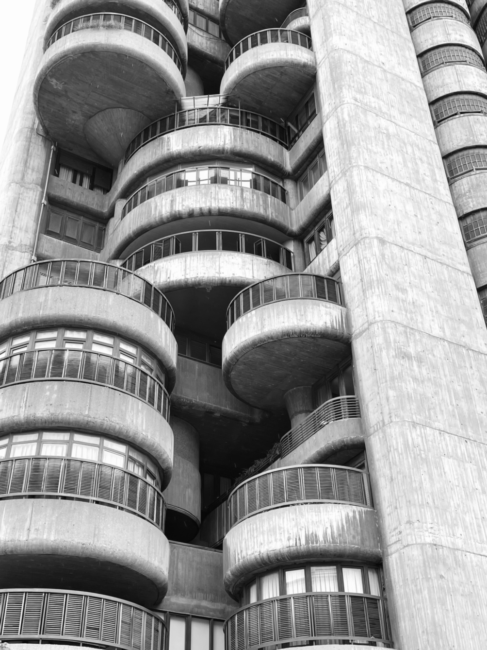 마드리드 시내 카르타헤나 역 앞에는 쑥쑥 자라난 팽이버섯 균사체처럼 여러 개의 다발 기둥 형태의 아파트 하나가 솟아있다. Torres Blancas, 스페인어로 백색 탑이라는 뜻을 가진 이름과는 다르게 칙칙한 회색의 콘크리트 건물은 을씨년스러운 분위기를 풍긴다.