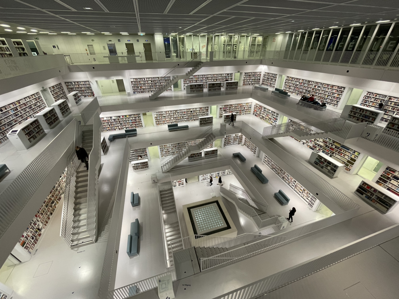 그래서인지 Yi Architects에서 설계를 담당한 슈투트가르트의 시립 도서관은 시내 중심에, 트램 정거장과 대형 쇼핑몰 앞에 당당히 자리 잡고 있다. 때문에 슈투트가르트 시내 구경 중 시간을 내어 방문하기에 그리 부담스럽지 않다. 바로 앞 쇼핑몰에서 식사를 해결하기에도 용이하다.
